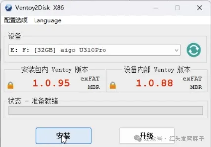 下载完成后解压,直接运行ventoy2disk,插入U盘后点击刷新会识别到设备,由于我这个U盘之前用ventoy做过启动盘,所以检测到了原来的老版本,直接点击安装,记得备份重要数据,然后输入yes,很快就可以制作好ventoy的启动盘。