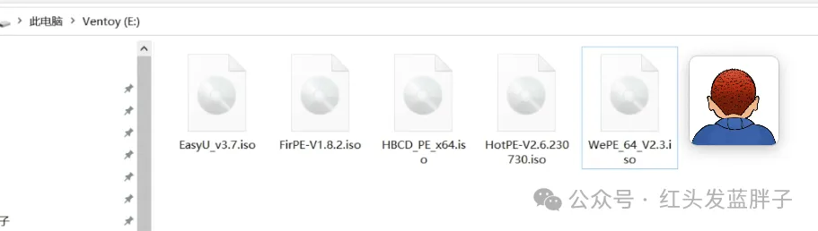 最后我们把5个pe的iso文件一起放到ventoy里,这样就可以同时拥有5个windows pe。
