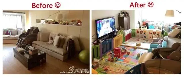 没有宝宝之前,某次刷微博的时候被他们家被游戏围栏撑满的客厅震惊了,当时觉得,哇,这个客厅就完全被「乱」字占据了,我以后肯定不要这样!!