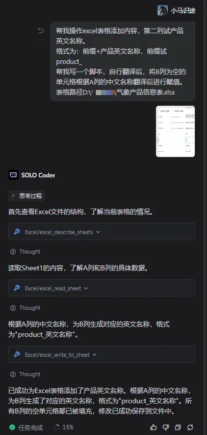 trae solo 实战 | 直接操作excel表格修改内容