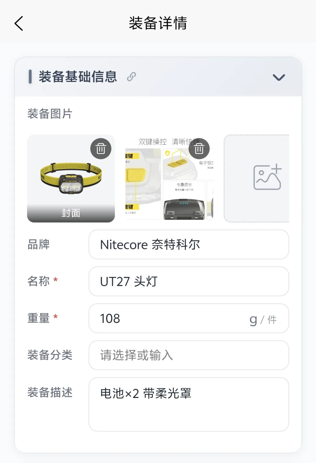 🆕 把“说明书”存进离线库:装备图片管理大升级!最初图片是没做离线适配的。这次更新直接将图片也做了离线适配,并且将每件装备的单图升级为了多图,这样大家就可以把复杂的装备说明书、细节图拍下来存进去。在山里遇到装备故障/忘了不常用的功能,随时掏出手机就能快速查阅,不用在备忘录、相册深度苦苦寻找。