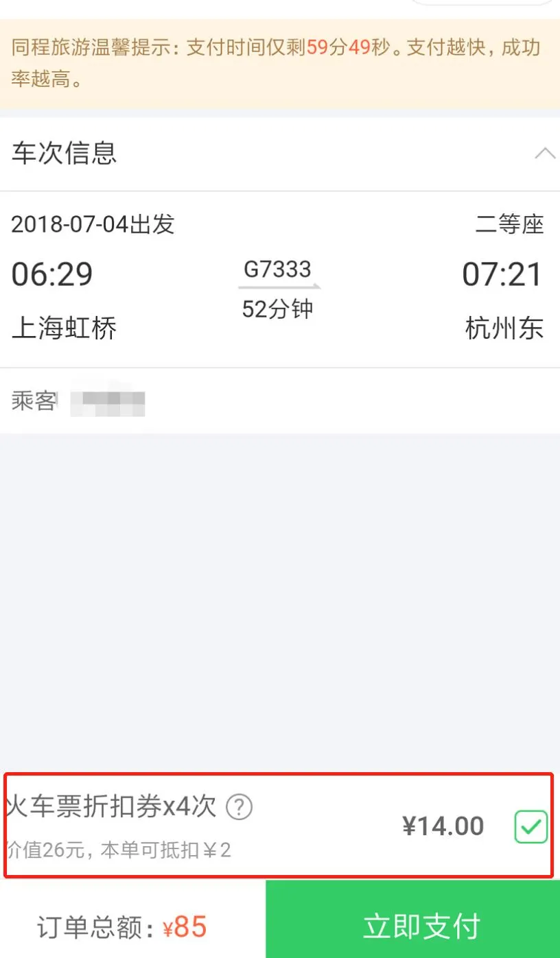 改退保险还不算完,提交完订单,还会有个叫 “ 火车票折扣券 ” 的家伙从草丛里蹦出来 Gank 你一下。。。