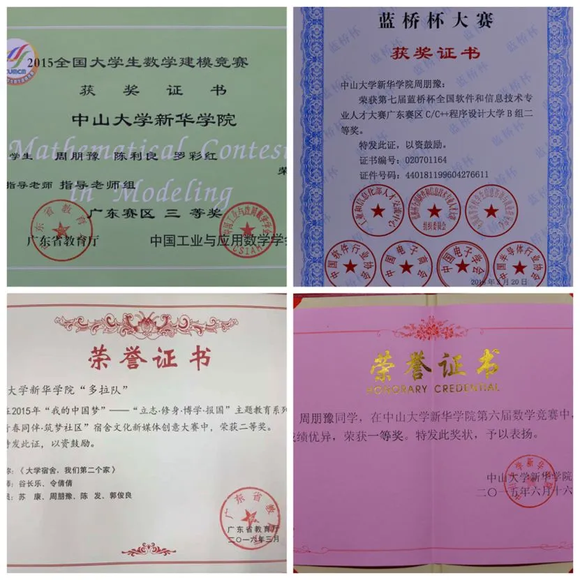 周朋豫所获的部分奖项