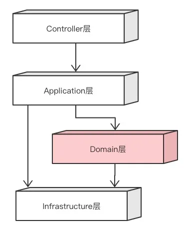 这种看起来“无伤大雅”的设计,实际上还是存在不小的隐患,也违背了我当初想把业务复杂度和技术复杂度分开的初心,当业务变得更加复杂的时候,这种“偷懒”行为很可能会导致Domain层堕落成大泥球(Big mud ball)。因此,在COLA 2.0的时候,我决定用DIP来反转Domain层和Infrastructure层的关系,最终形成如下的结构: