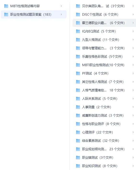 包含MBTI、九型人格、DISC、霍兰德职业测评完整教程 + 自测问卷,帮你精准定位优势,找对职业方向,写简历不盲目。