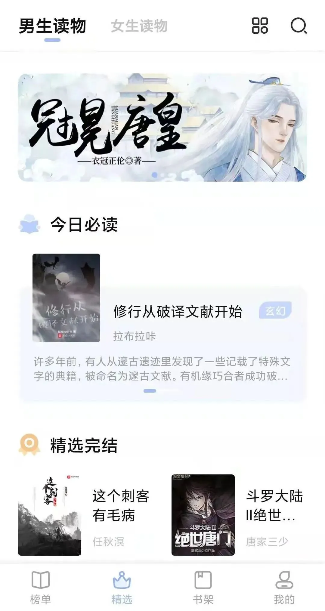 “精选”中有着今日必读以及精选完结