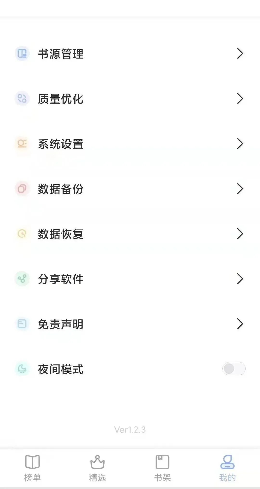 软件底部分为榜单、精选、书架以及我的四大板块,