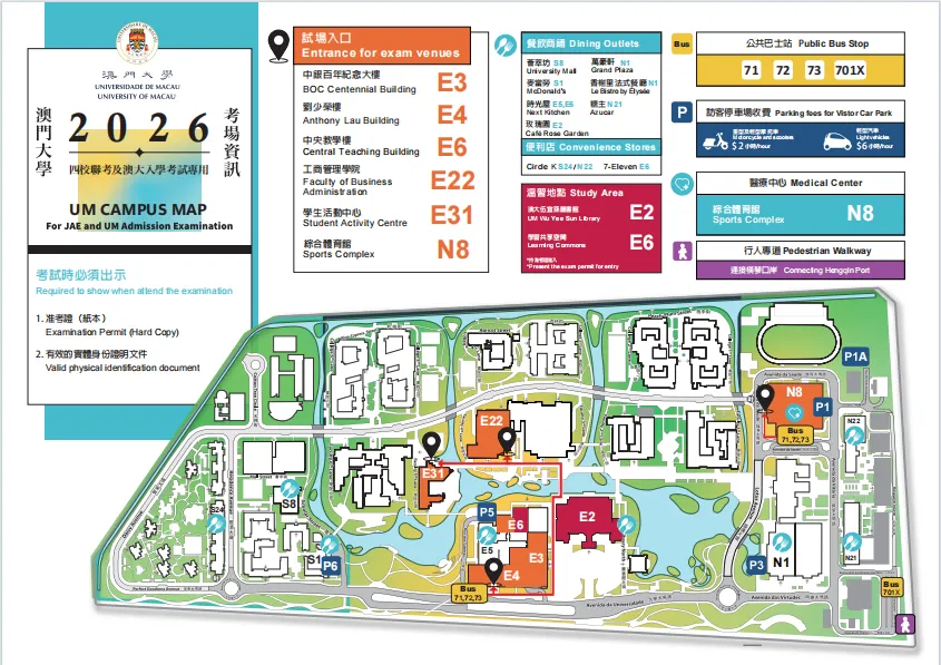 • 报考特定课程(如澳门大学物理科)的考生,将获得两份准考证,包括“澳门大学入学考试准考证”和“澳门四校联合入学考试准考证”。