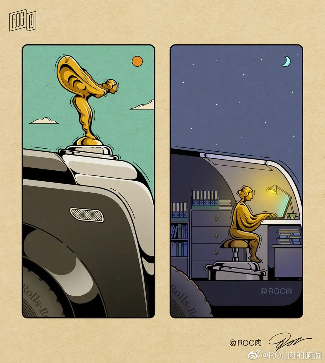 插画师@ROC-肉用其鬼才的脑洞,总能找到奇葩的切入点,让污污的小物件,变的有趣起来。