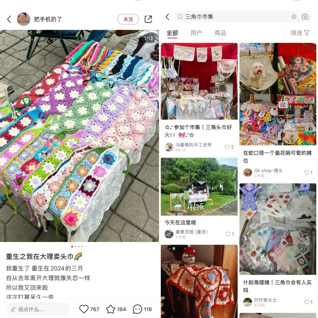 在市集摆摊卖三角巾成流行