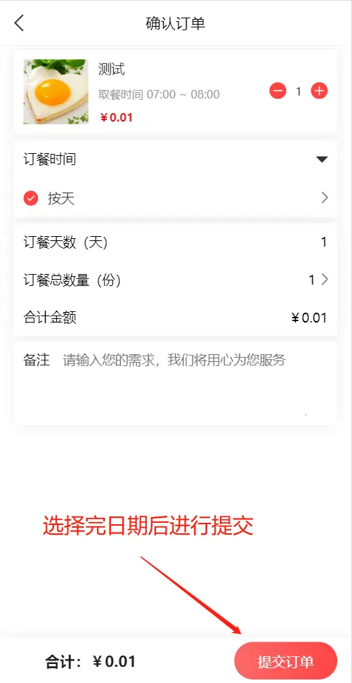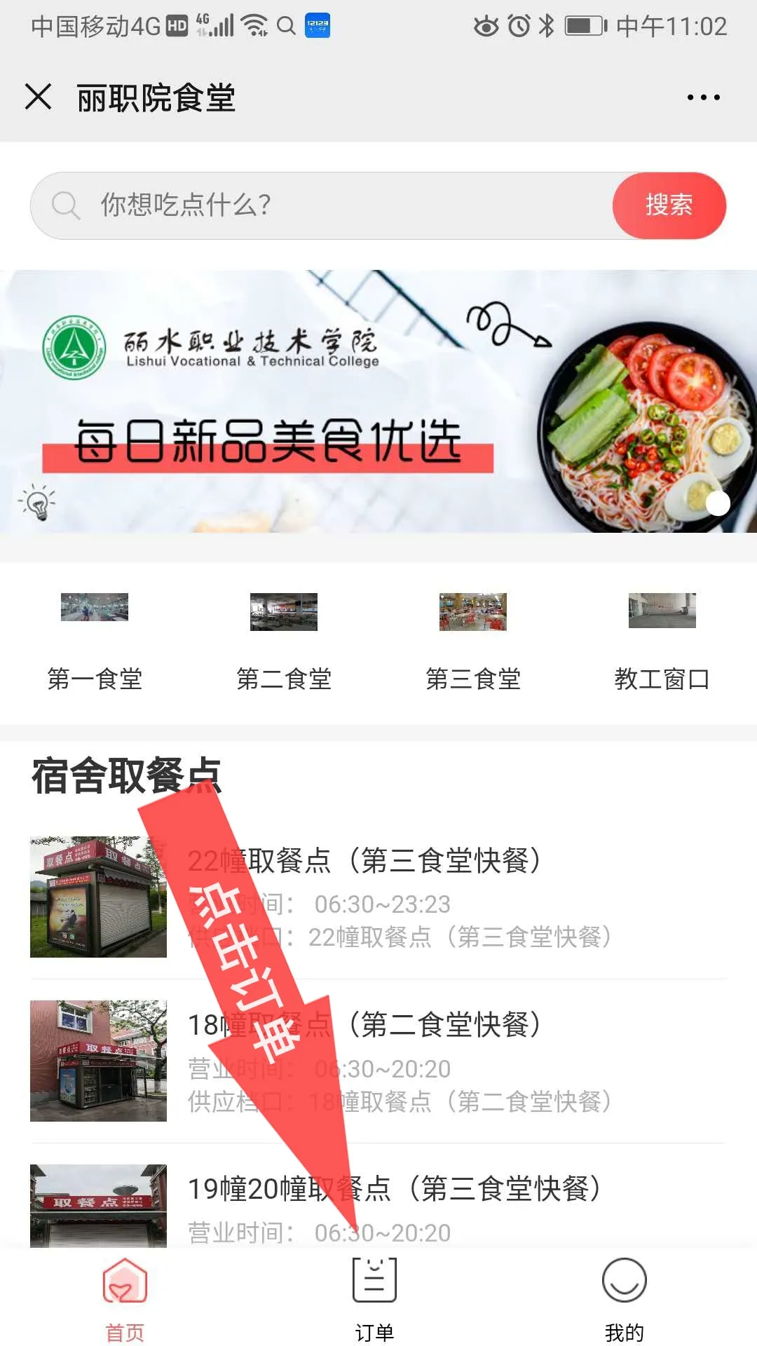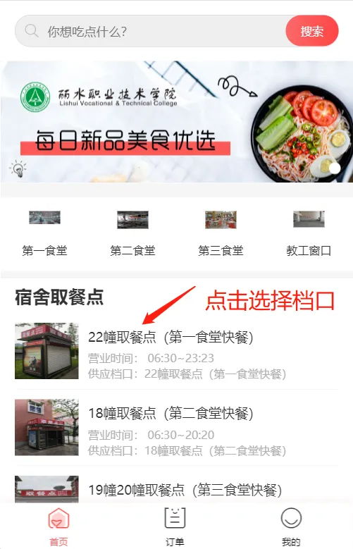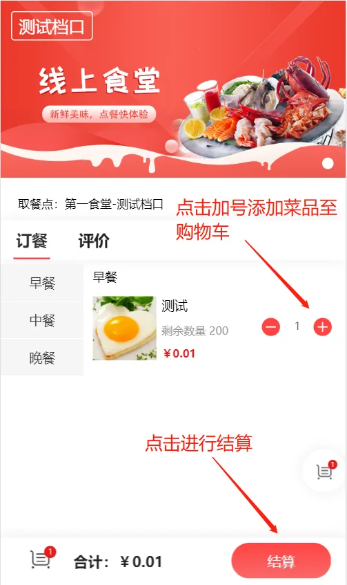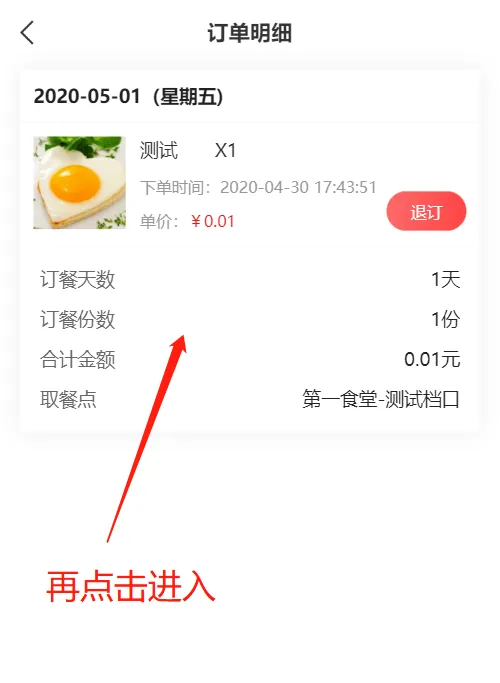 (2)进入菜品页面,该菜品没到取餐时间,显示【未到取餐时间】,无法取餐;菜品到了取餐时间,显示订单二维码,凭二维码到食堂扫码核销取餐。