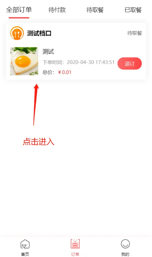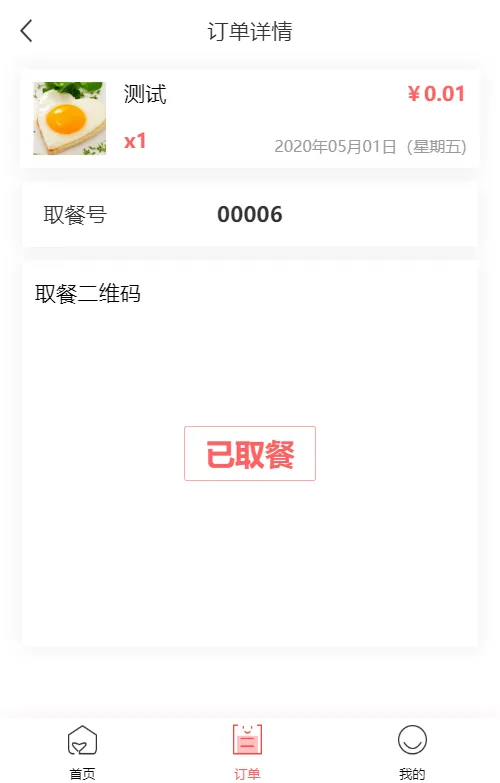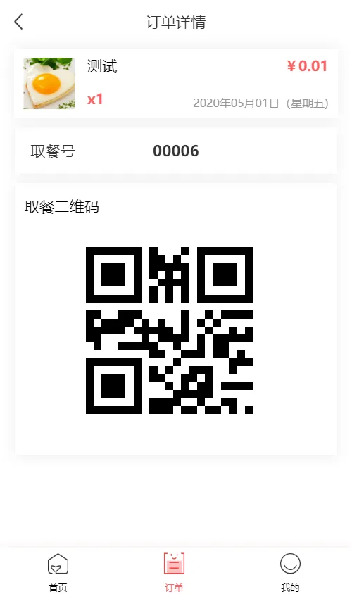 到取餐时间会生成一个二维码,展示二维码给商家进行核销