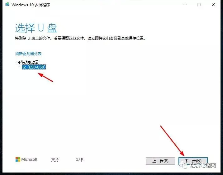5、这里把U盘插在电脑的USB接口,选择U盘点击下一步。