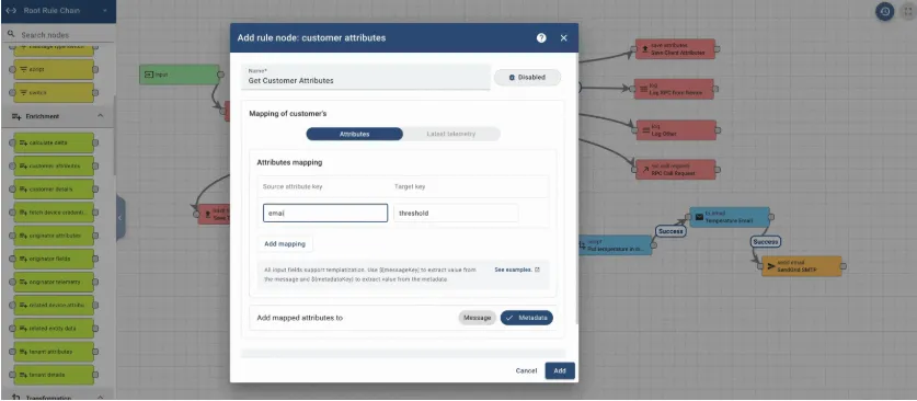 内置强大物联网规则引擎,可视化搭建复杂规则链,实现数据转换、规范化处理。支持遥测事件监听、属性更新监测、设备离线告警、用户操作触发等场景,自动执行预设逻辑,联动告警通知与第三方集成,实现IoT业务闭环。