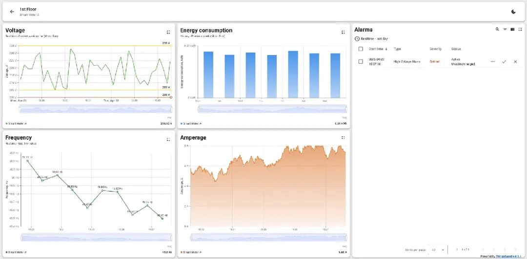 采用可扩展、高容错架构,稳定采集并存储设备遥测数据。内置丰富可视化组件+自定义小部件,灵活搭建实时仪表盘,支持客户权限共享,数据展示不局限于简单图表,工业监控、设备状态、能耗分析等场景均可适配。