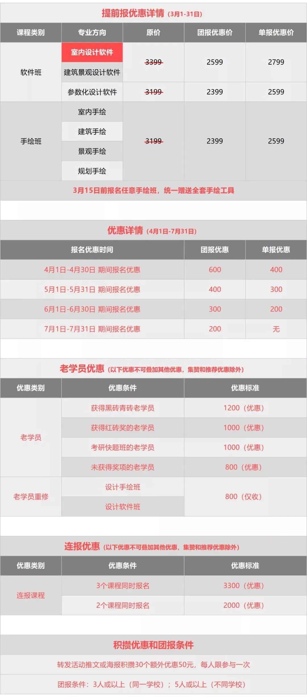 3月15日前报名手绘表现班均统一赠送全套工具;