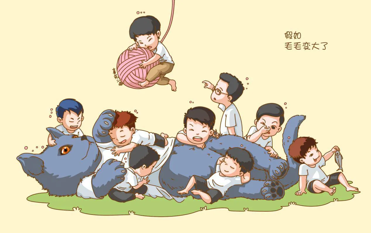 他们的团宠毛毛无疑也是队员和粉丝的心头肉之一啦!如果……角色互换,毛毛变大了,那么队员们会怎么把自己的爱意施加给毛毛呢?本画作者也是把胖胖们的特点体现的淋漓尽致啊。我不管~毛毛还小,我要去偷毛毛!