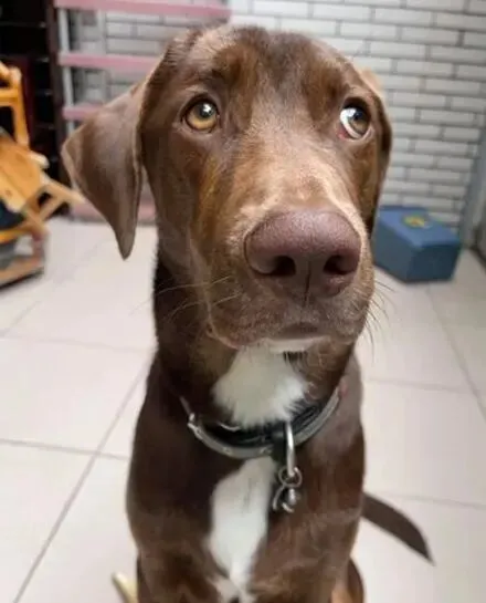 一只9个月的混血威玛猎犬 , 叫欧力够 , 连着下了好几天雨 , 出不了门 , 憋得够呛 , 主人直接跑去百货买了个三角锥回来