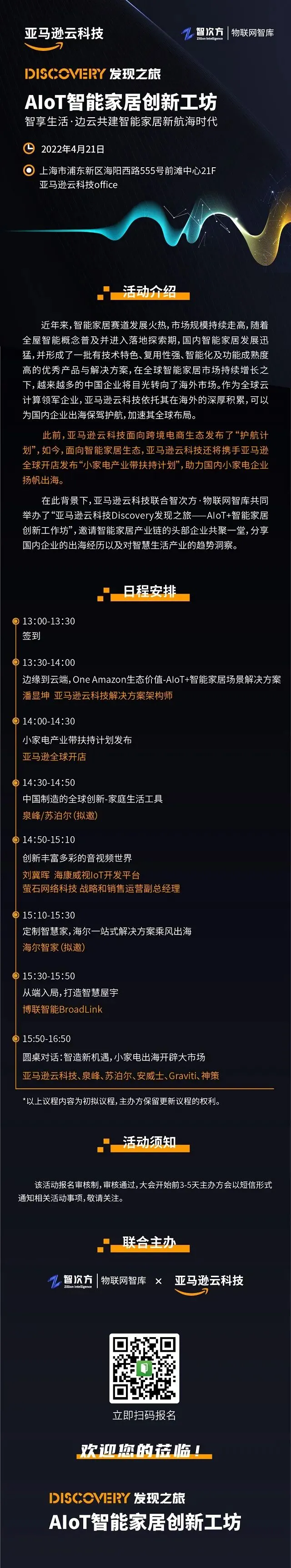 扫码报名参与亚马逊云科技AIoT智能家居创新工坊