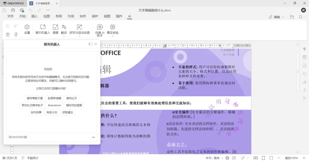 配备完整的编辑与格式排版工具,助您轻松创建专业、可商用的文档;