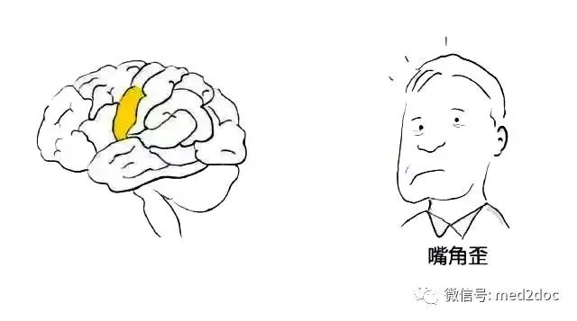 如果卒中发生在这里,就会出现嘴角歪斜;