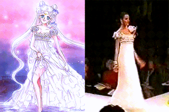 月野兔变身倩尼迪公主的这一袭白裙,则来自Dior 1992春夏系列。