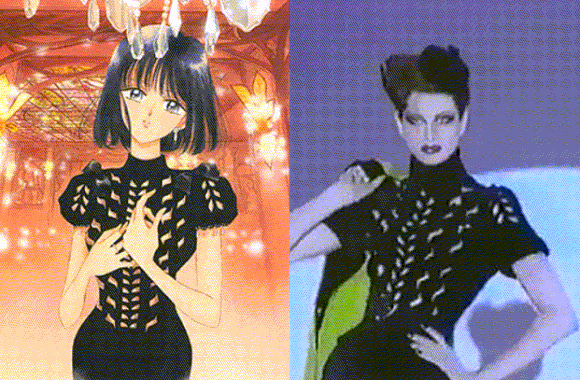 其中最为人所熟知的是冥王星雪奈的这一身黑色链条礼服,来自Chanel 1992秋冬系列。