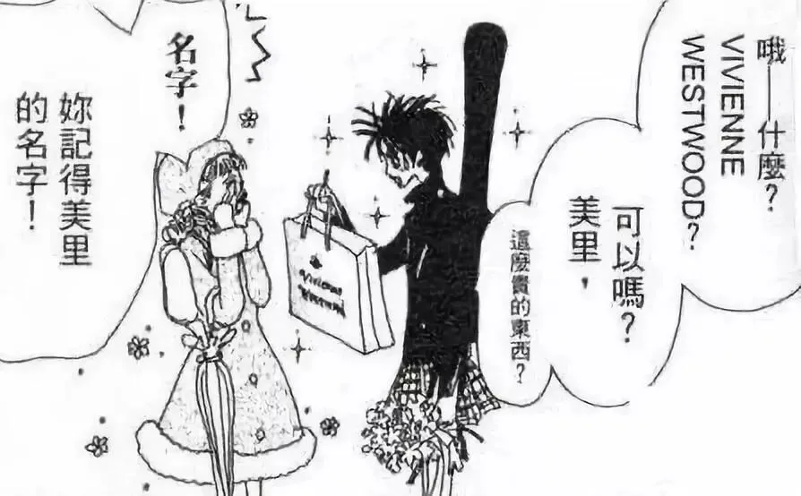 漫画里离开家乡去东京之前,就经常有歌迷给她送Vivienne Westwood的衣服。