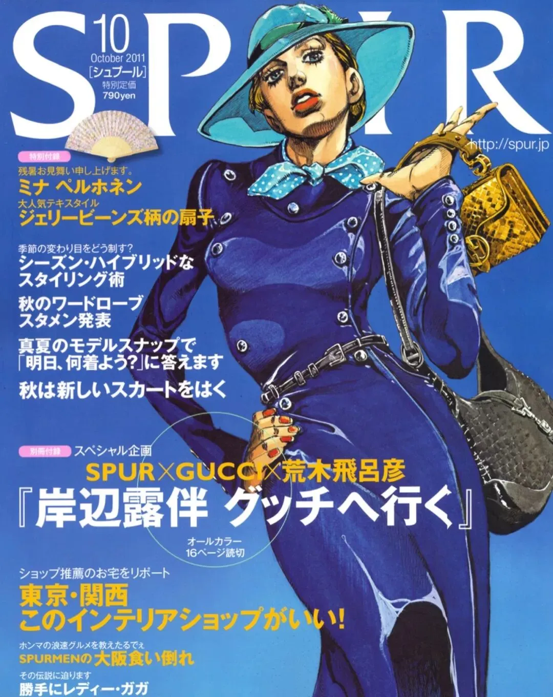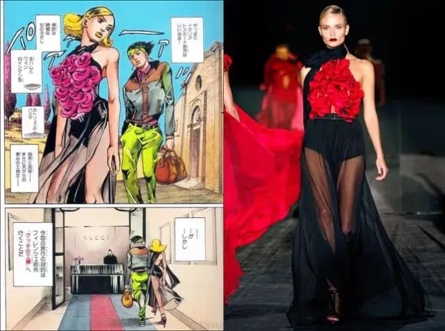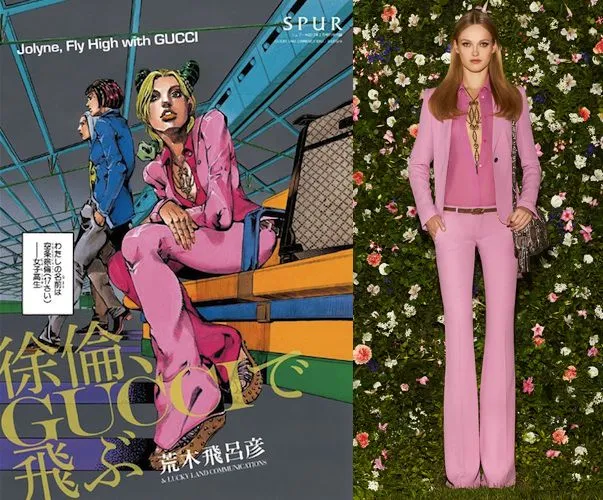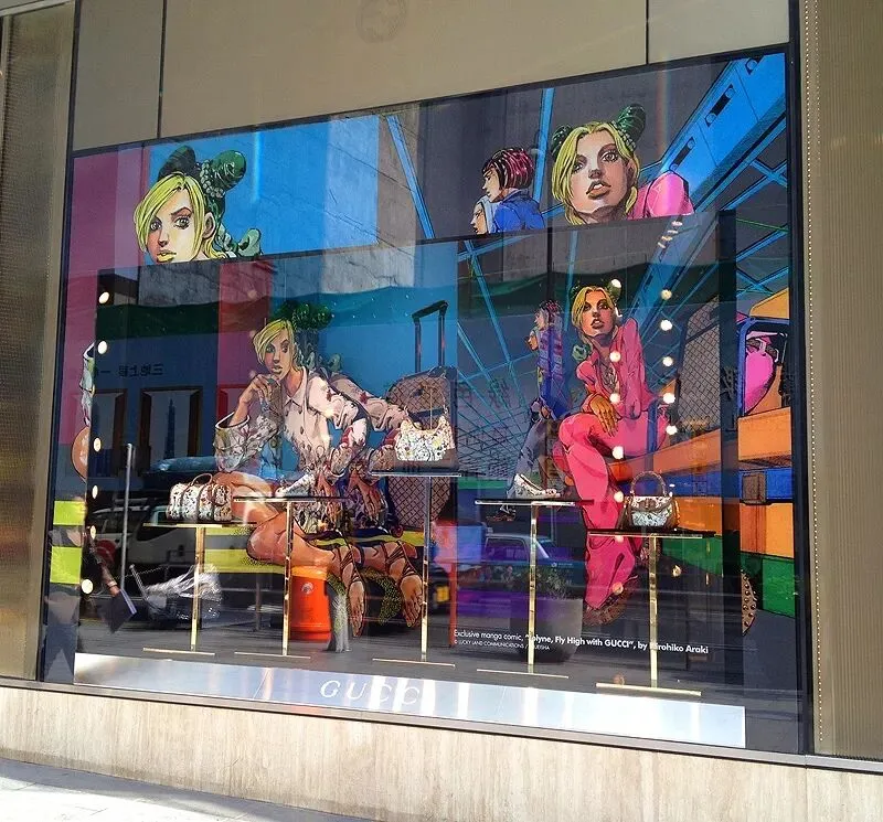2011年的时候,Gucci联合《JoJo》的作者荒木飞吕彦和时尚杂志SPUR,举办了一场「岸辺露伴 新宿に行く」展,意思是“岸边露伴(《JoJo》中的一名角色),一起去新宿吧。”