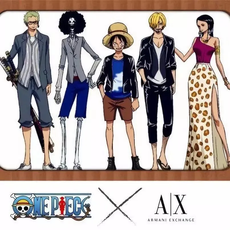 三年后,阿玛尼旗下的品牌 A|X Armani Exchange又找到了漫画作者尾田荣一郎合作,专门为《海贼王》的几位主角设计了的西装和礼服。