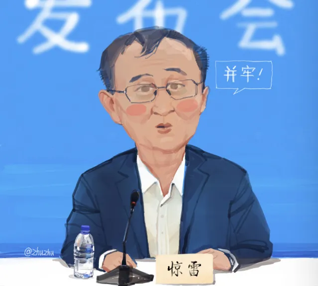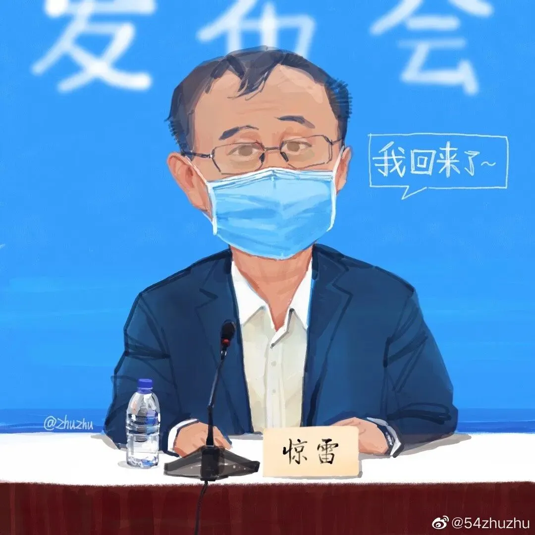 一幅张文宏与邬惊雷同框的插画