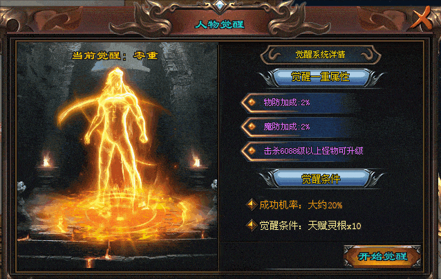 一个增加三攻上限,一个增加生命魔法上限,每当这两种装备升到一定等级后可以进行觉醒,即可获得血脉觉醒buff:攻击玩家时有几率造成目标大幅度的血量伤害
