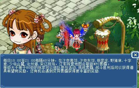 雾霾每次刷新将随机出现在汴京南郊、汴京东郊、柴家庄、野猪林、十字坡、少华山麓、沧州道、宋辽战场、辽军阵营的其中3个场景,刷新时间间隔60分钟。