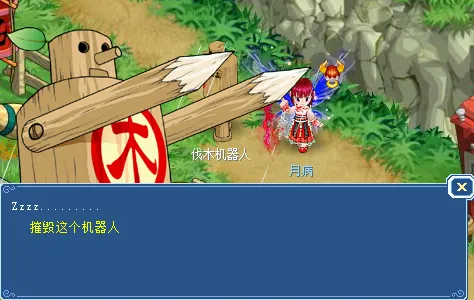玩家前往NPC处参与活动,点击NPC红领巾传送至场景地图,在地图中随机刷新砍伐机器人,玩家点击明雷怪进入战斗。