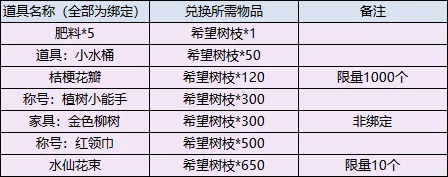 经验奖励、希望树枝。