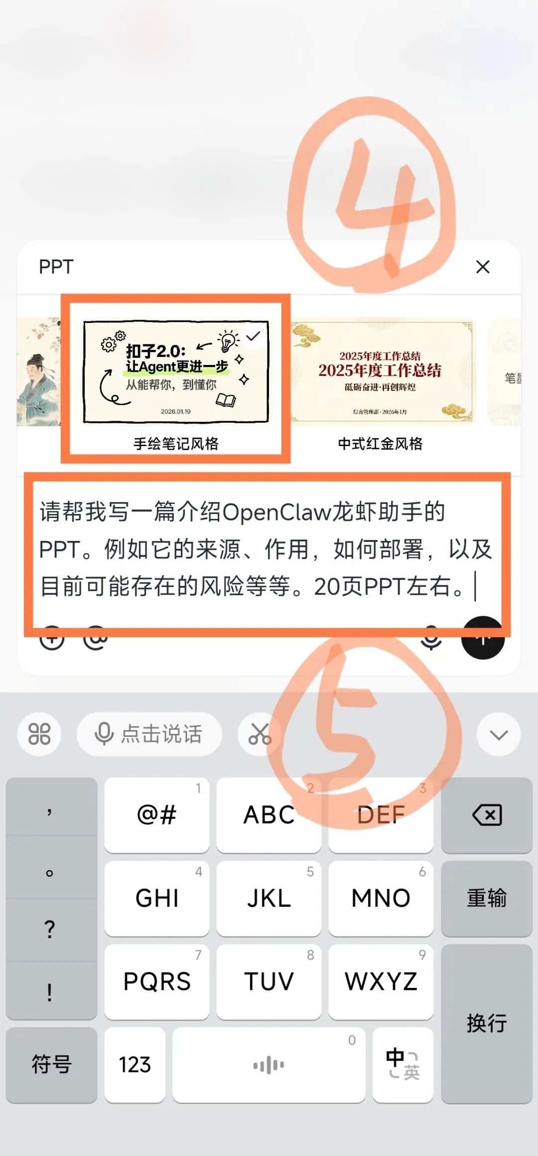 第一步,打开扣子APP,然后再点击下方的PPT。