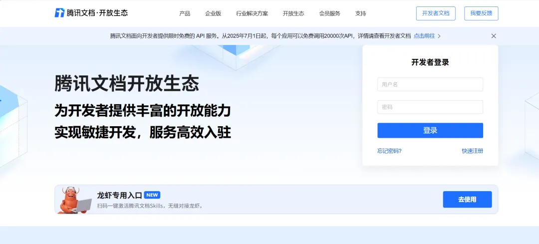 访问腾讯文档开发平台