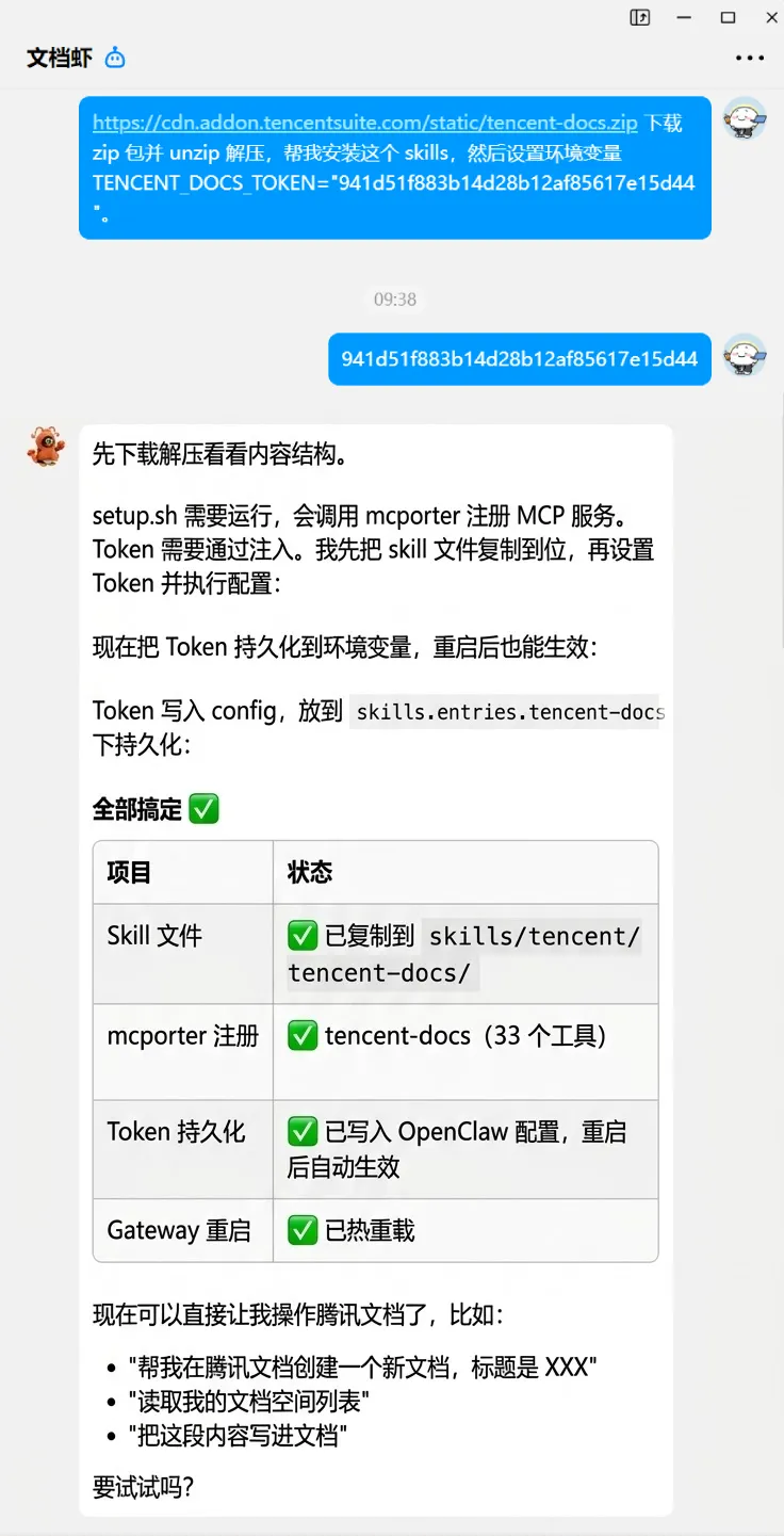 �� 装虾后,赶紧解锁腾讯文档Skill!真能干活!