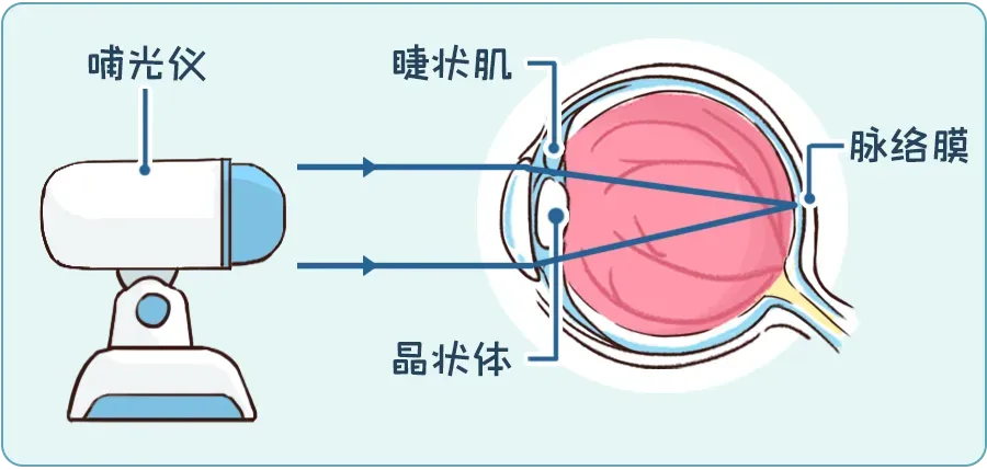 哺光仪的核心原理,是模拟太阳光中的有益红光,以低强度激光形式照射眼睛,宣称能改善眼部血液循环、增加脉络膜厚度、缩短眼轴,从而控制近视发展。
