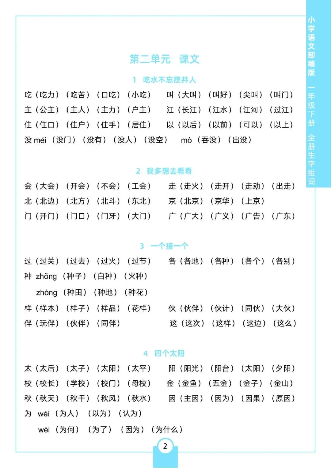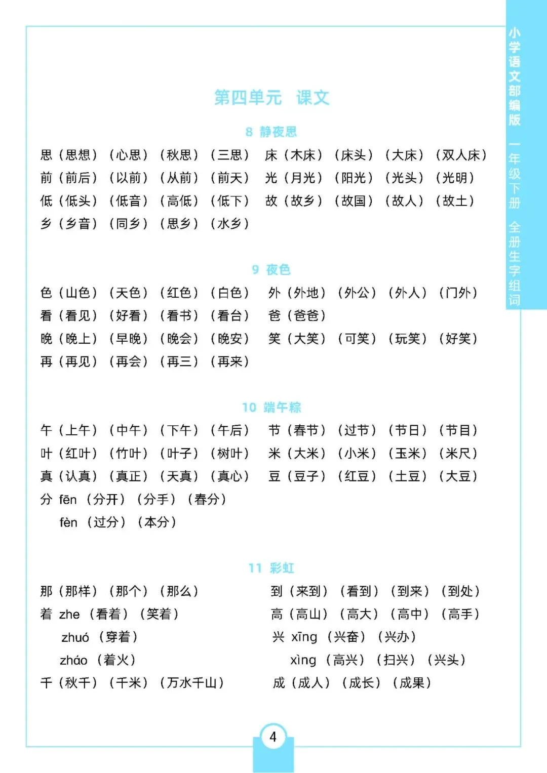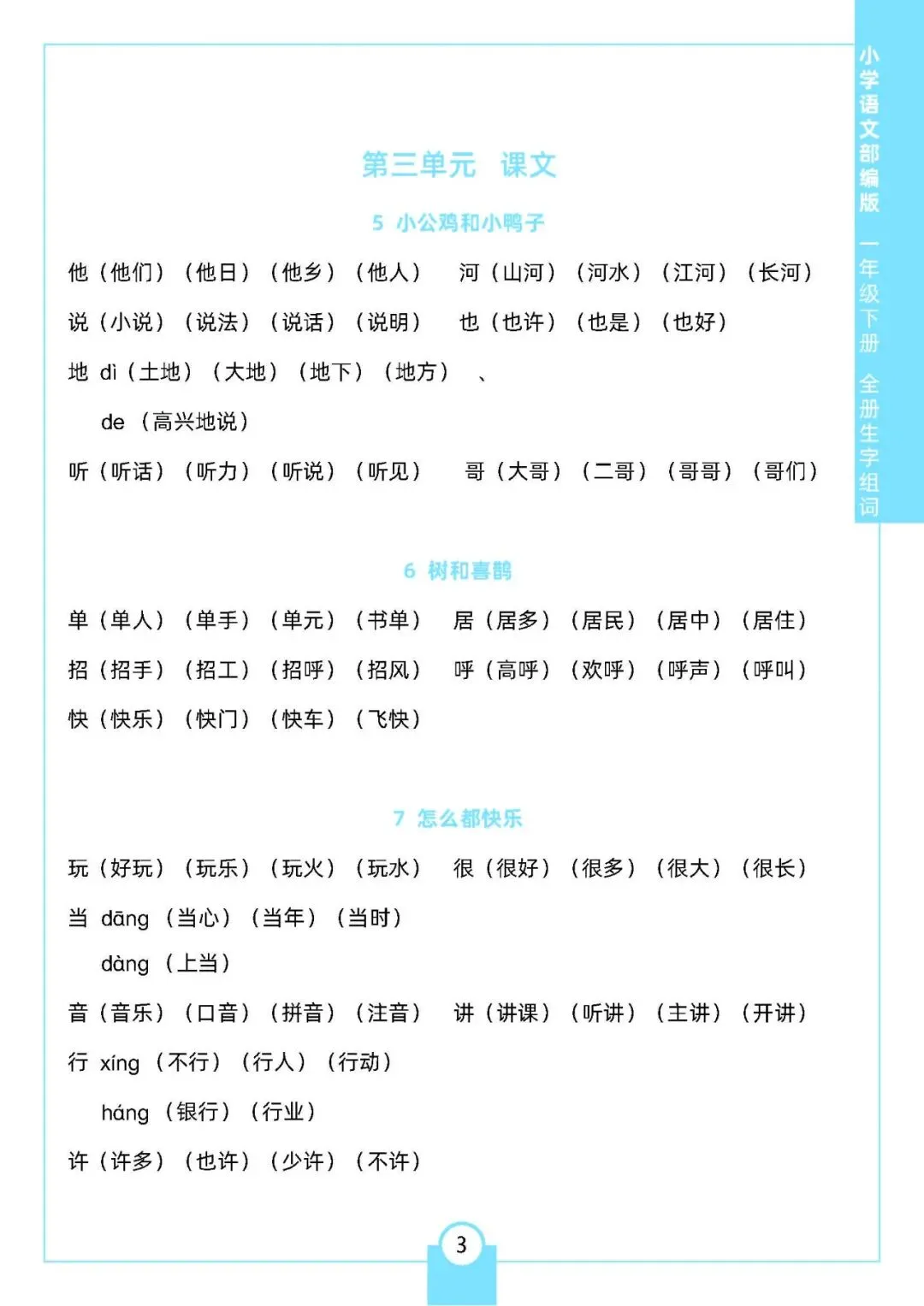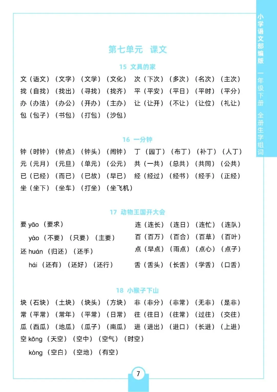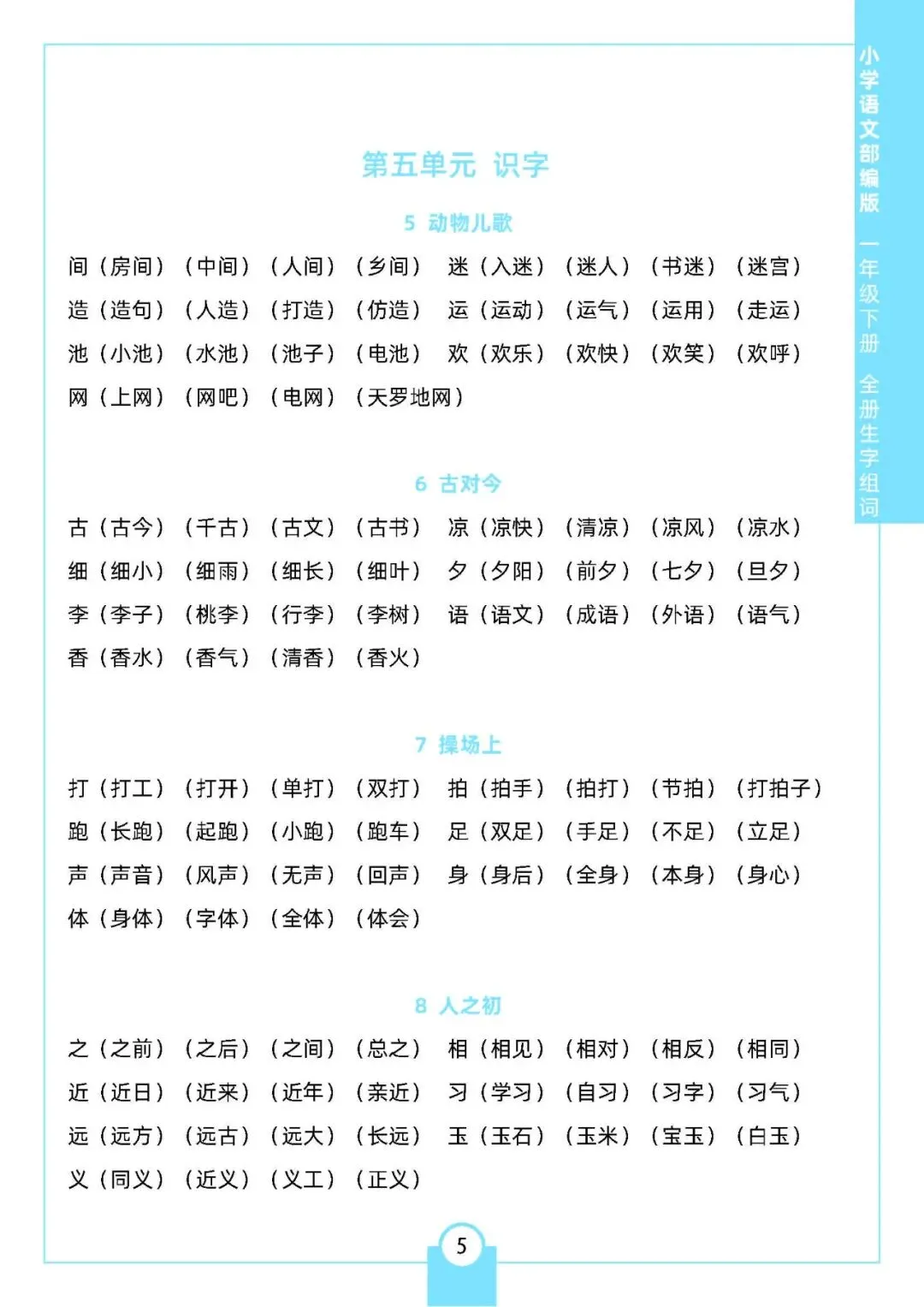 小学语文《每课生字组词》1-6年级下册(可下载打印,一二三四五六年级全套)