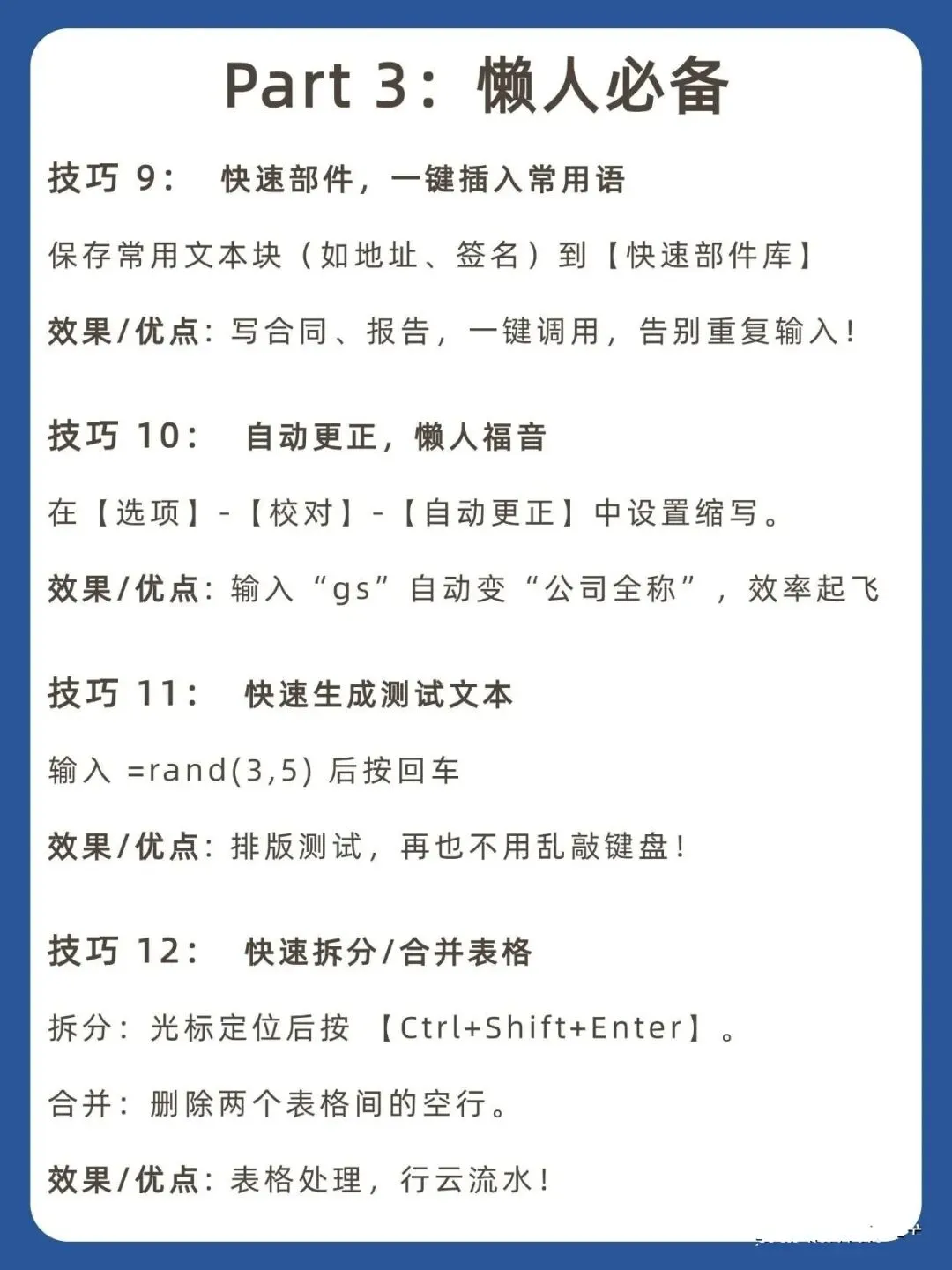 12个效率神技 + 4大类快捷键速查表,