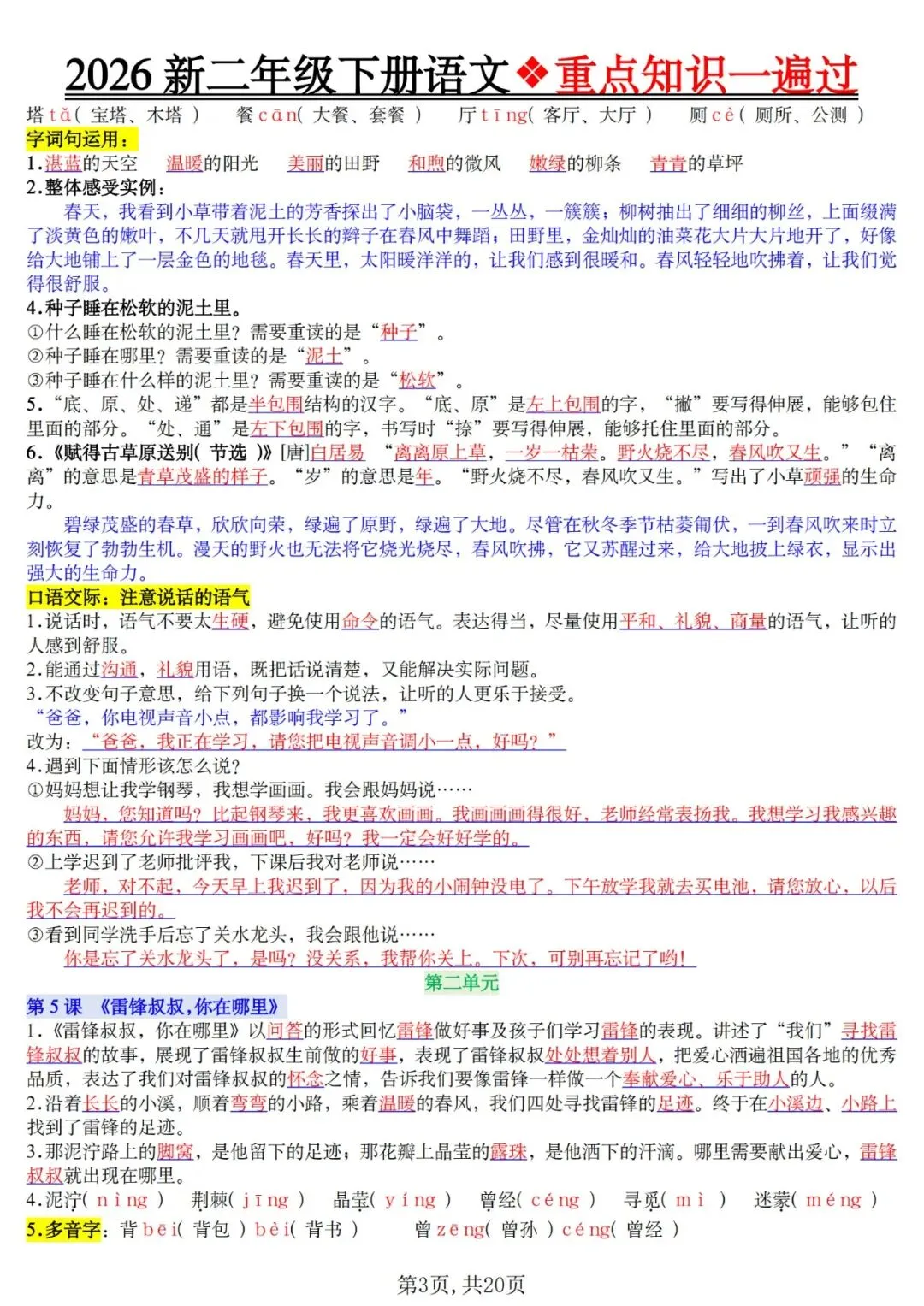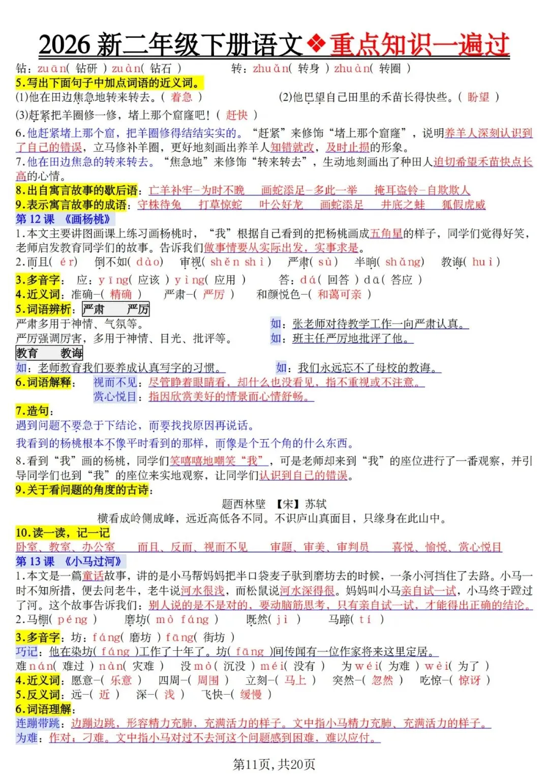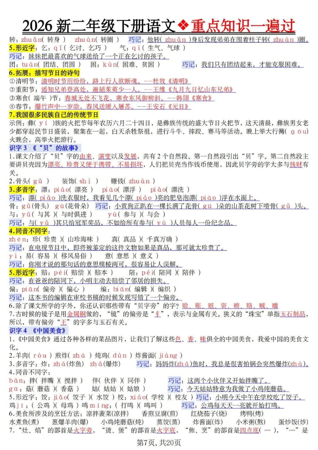 2026春二年级语文下册重点知识一遍过,可下载打印 文末有高清电子版领取方式 由于篇幅有限,高清完整版请下载电子版哦 领取完整电子版方式: ①:发财的小手点一点右下角“👍”和“❤️” ②:关注公众号后,在对话框中回复:015 (点击名片可直接关注)↑↑↑