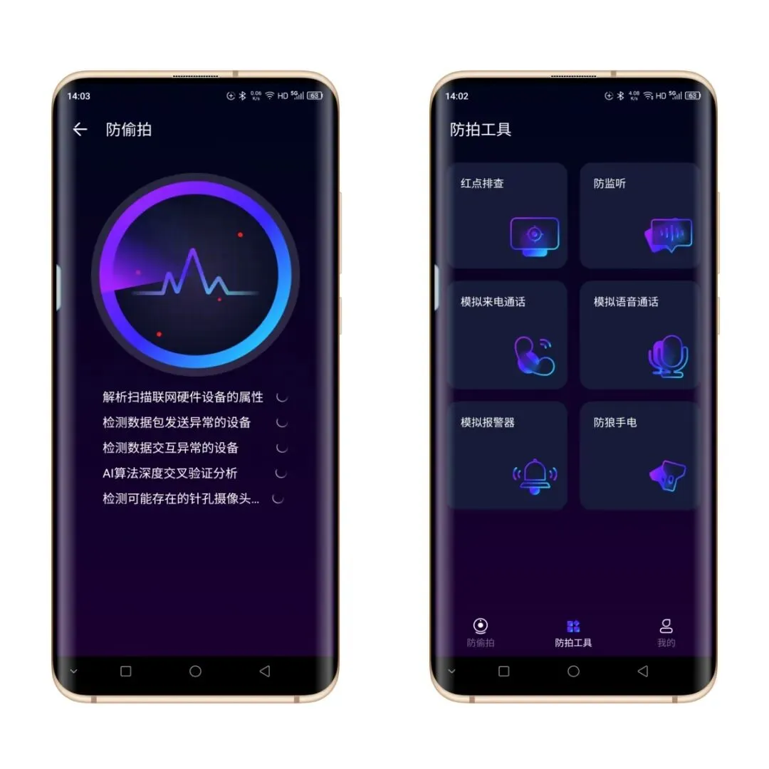 可精准排查针孔摄像头、隐藏偷拍设备,实时扫描并可视化展示检测进度