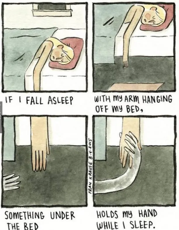 6.睡觉手搭在床沿,总担心床底下的什么东西会握住我的手。