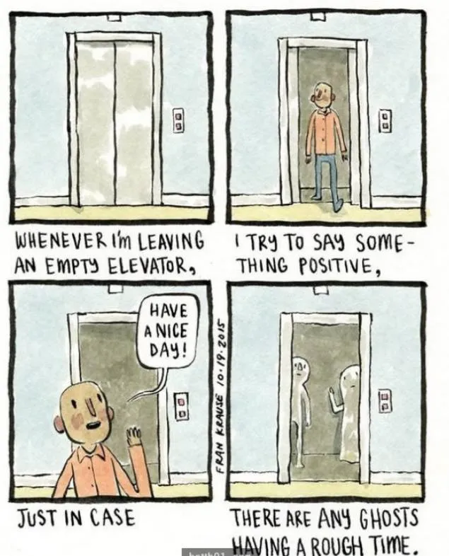 7.每次离开空荡荡的电梯,我都会说一些积极的话,就是确保里面的幽灵能好过一点。