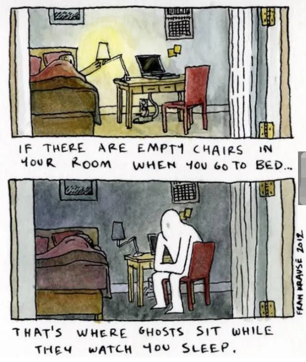 9.你卧室里有空椅子吗?你睡觉时幽灵就坐在那里看着你。