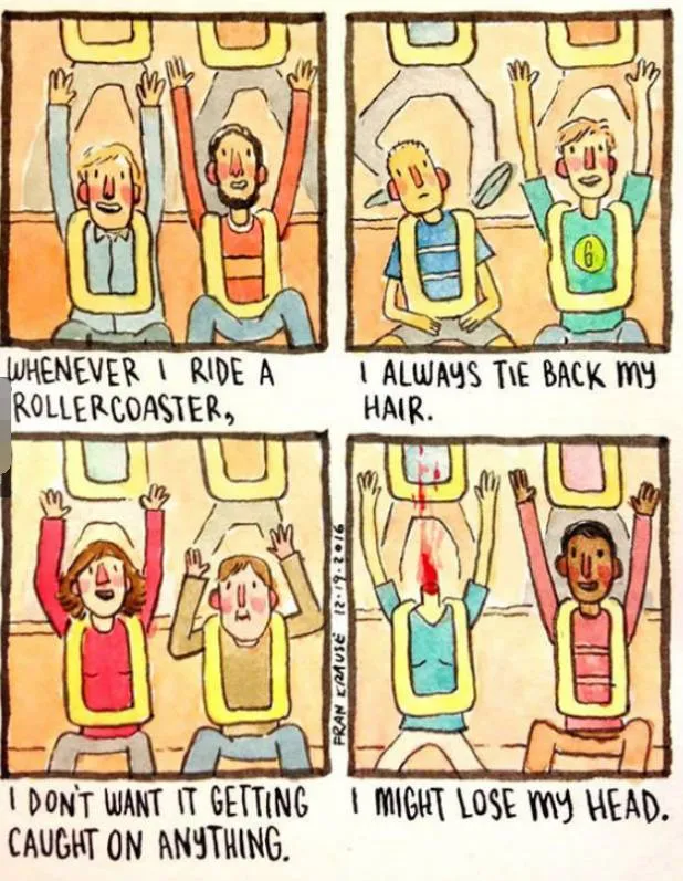 14.每次玩云霄飞车,我都会好好绑头发,我可不想头发被什么东西勾住,然后头都掉下来。。
