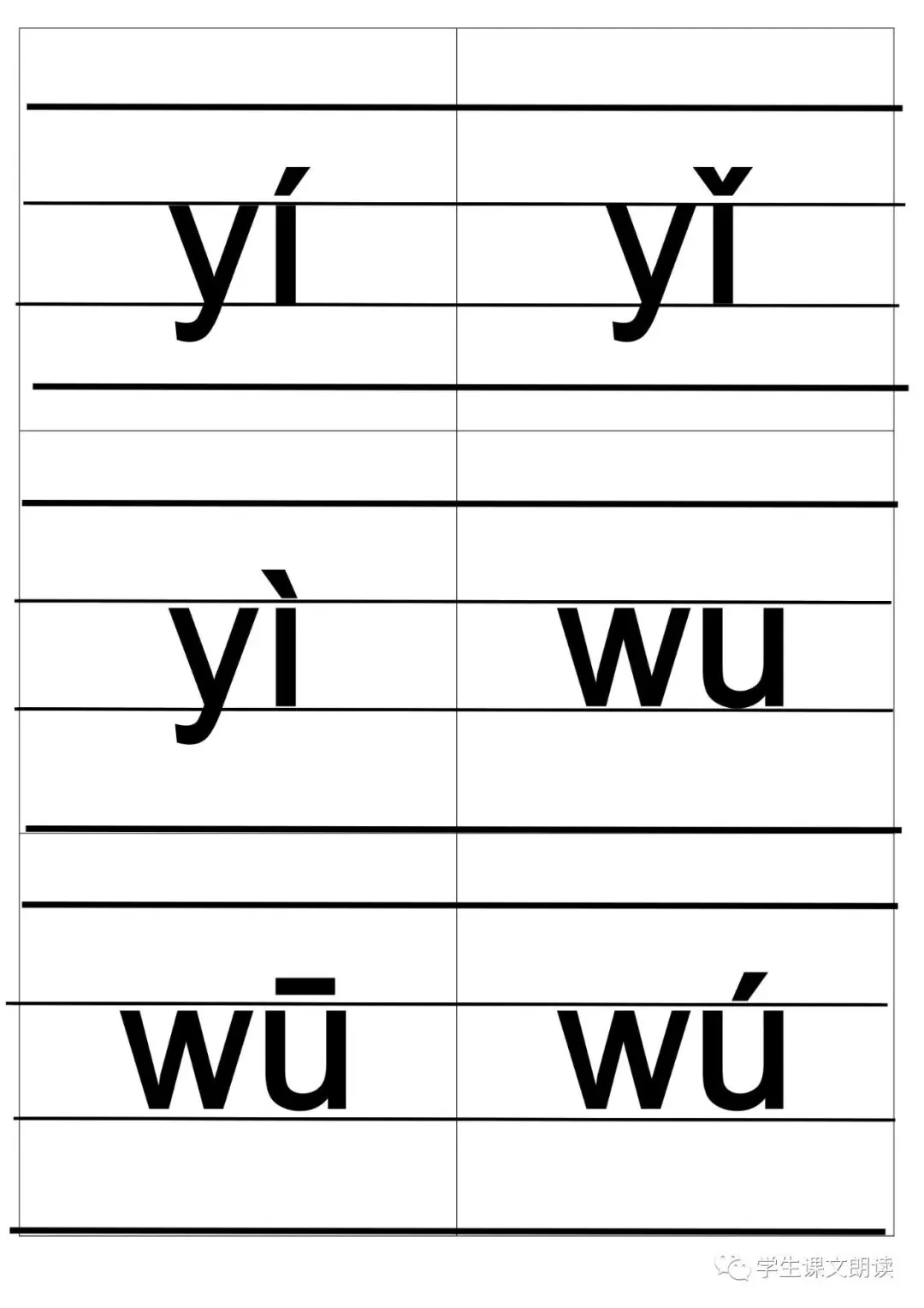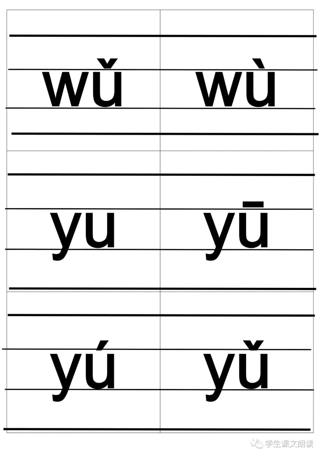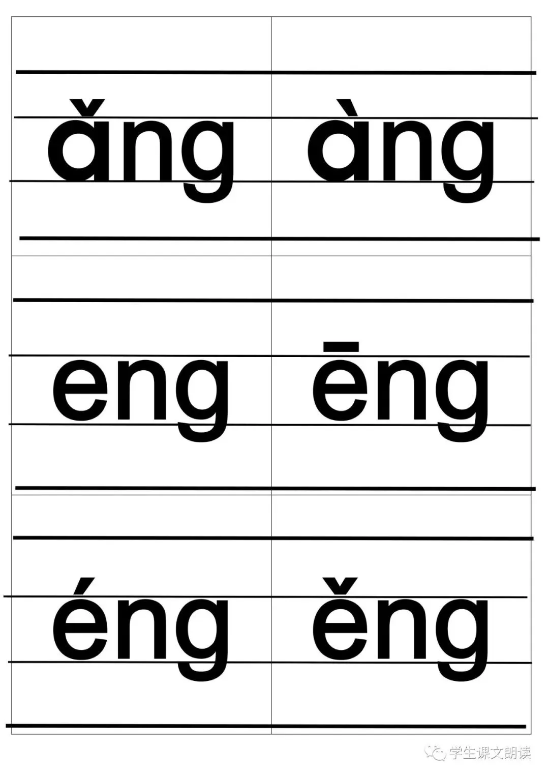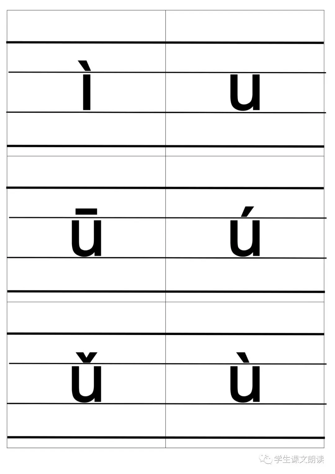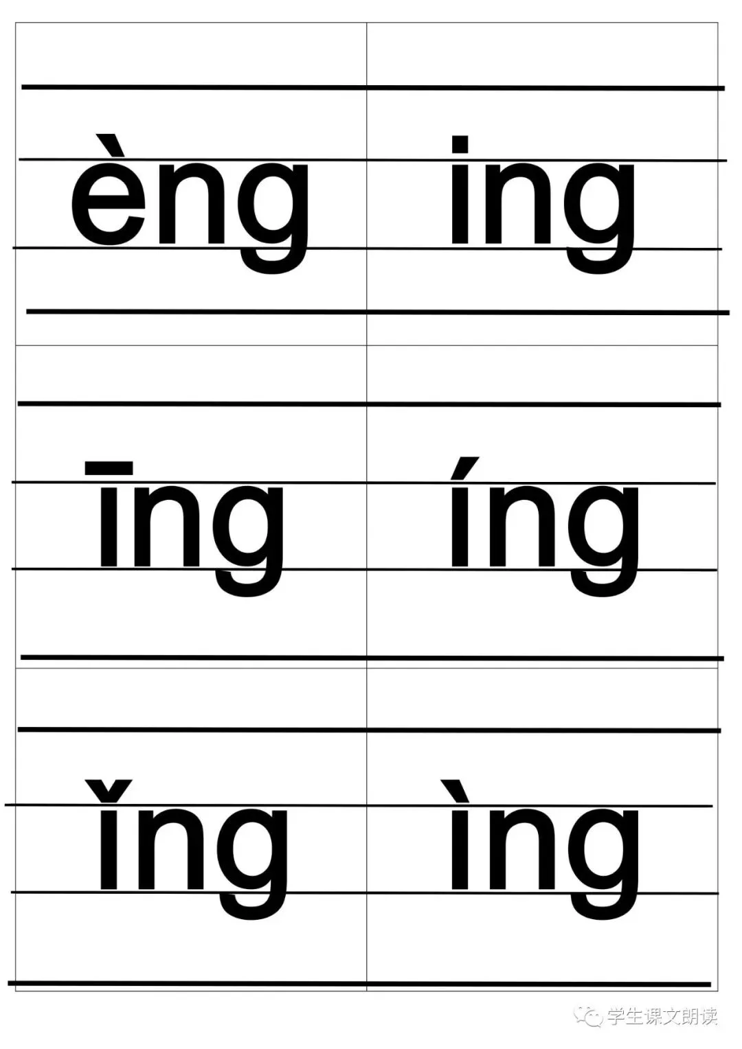 四线格汉语拼音字母大卡-带声调打印版,可下载!