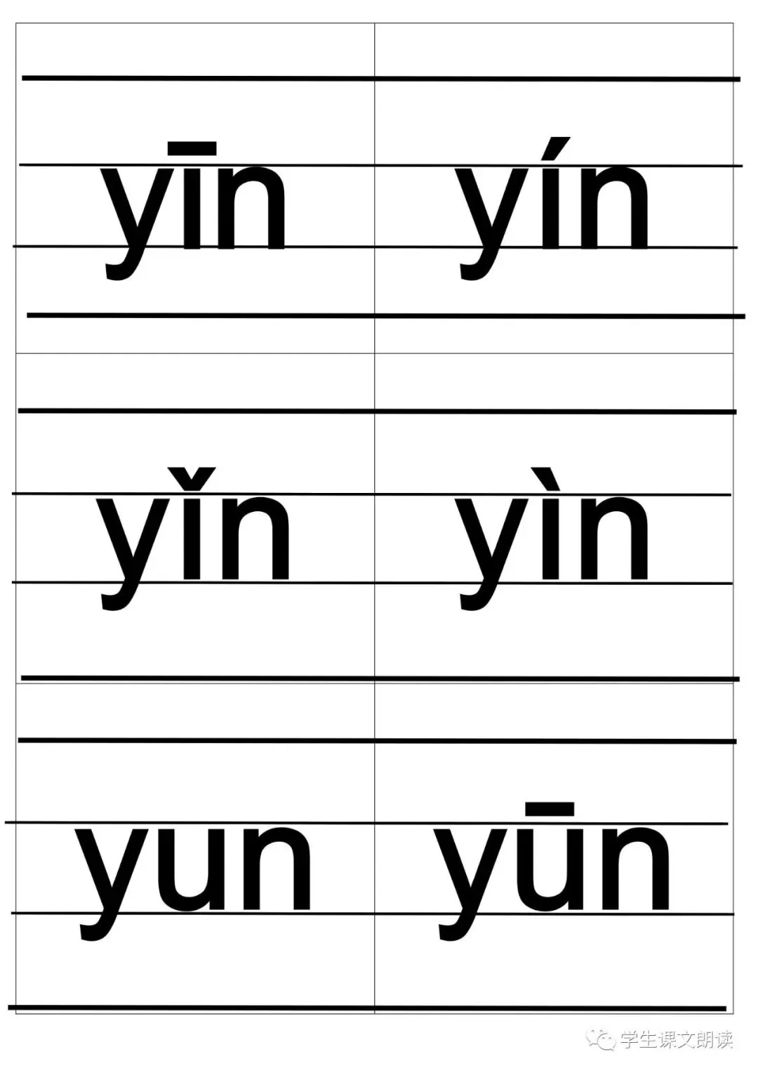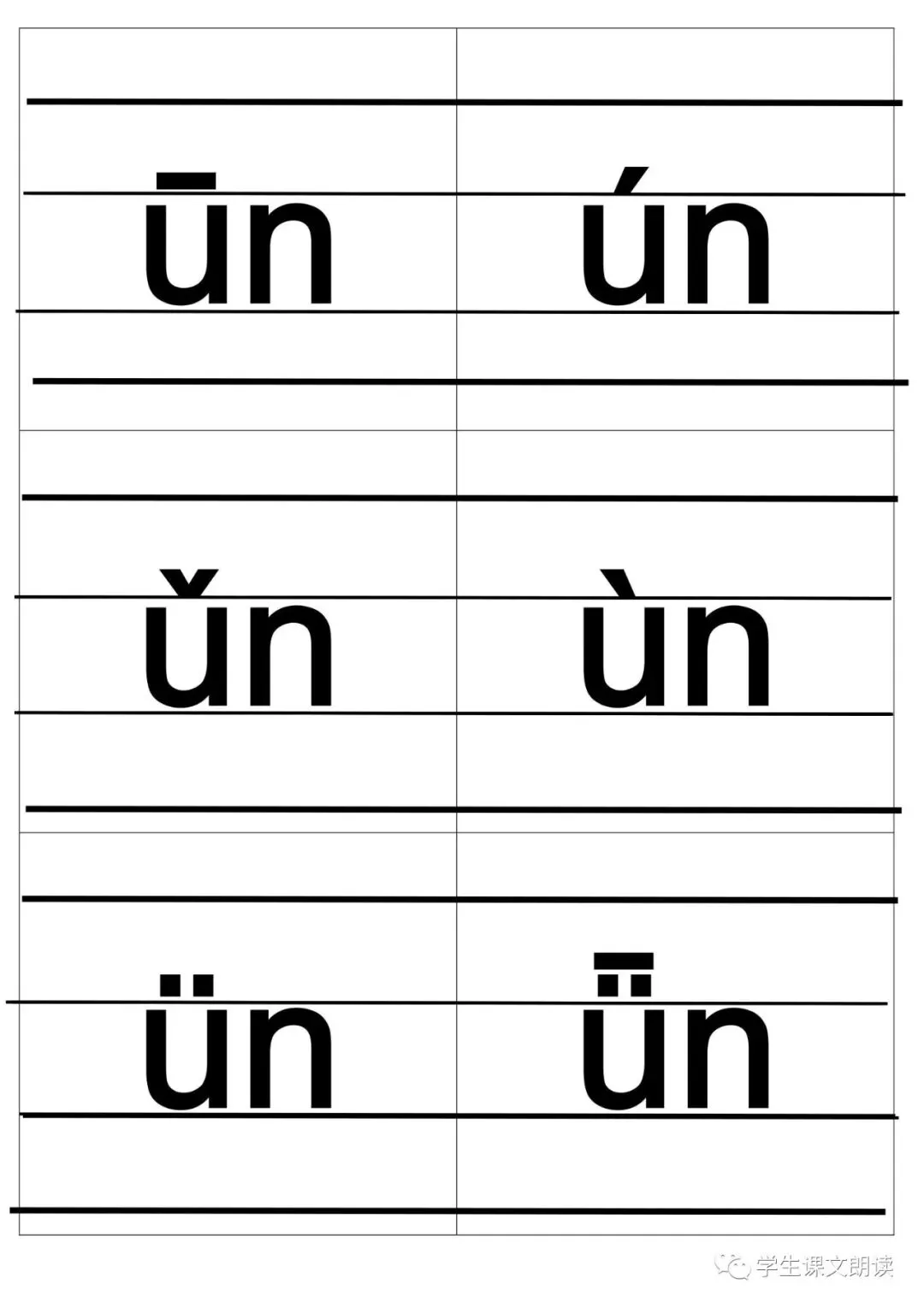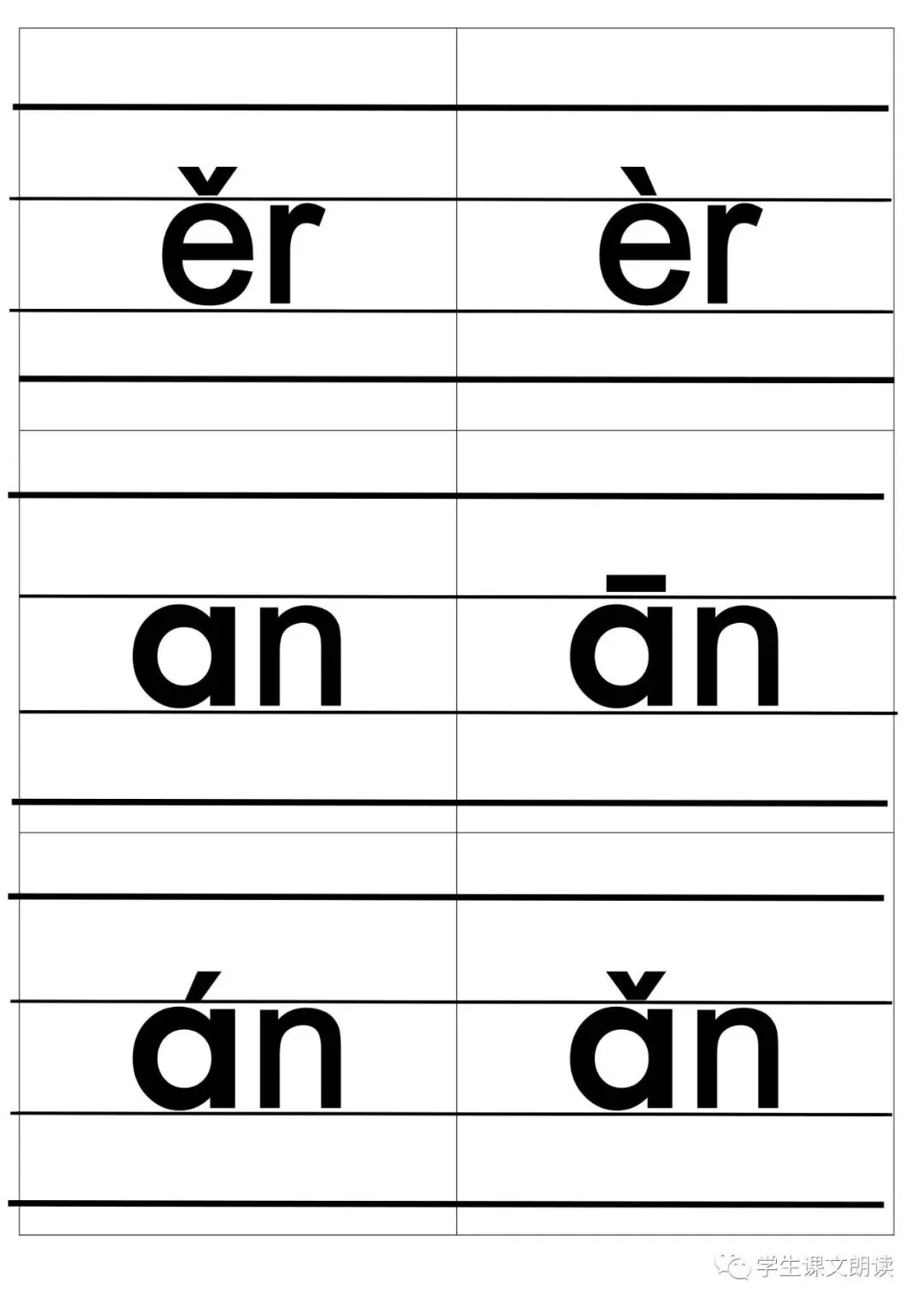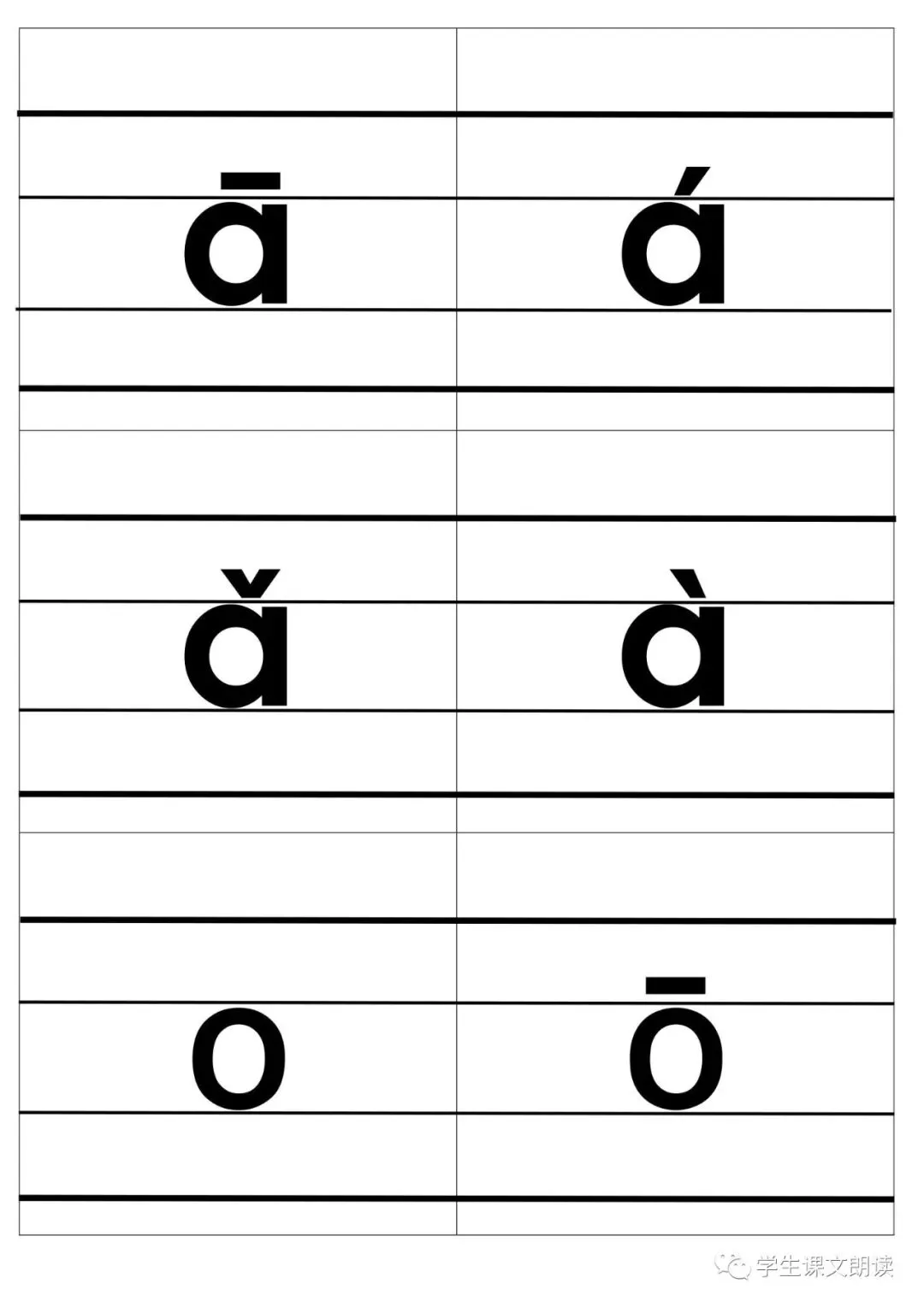 四线格汉语拼音字母大卡-带声调打印版,可下载!