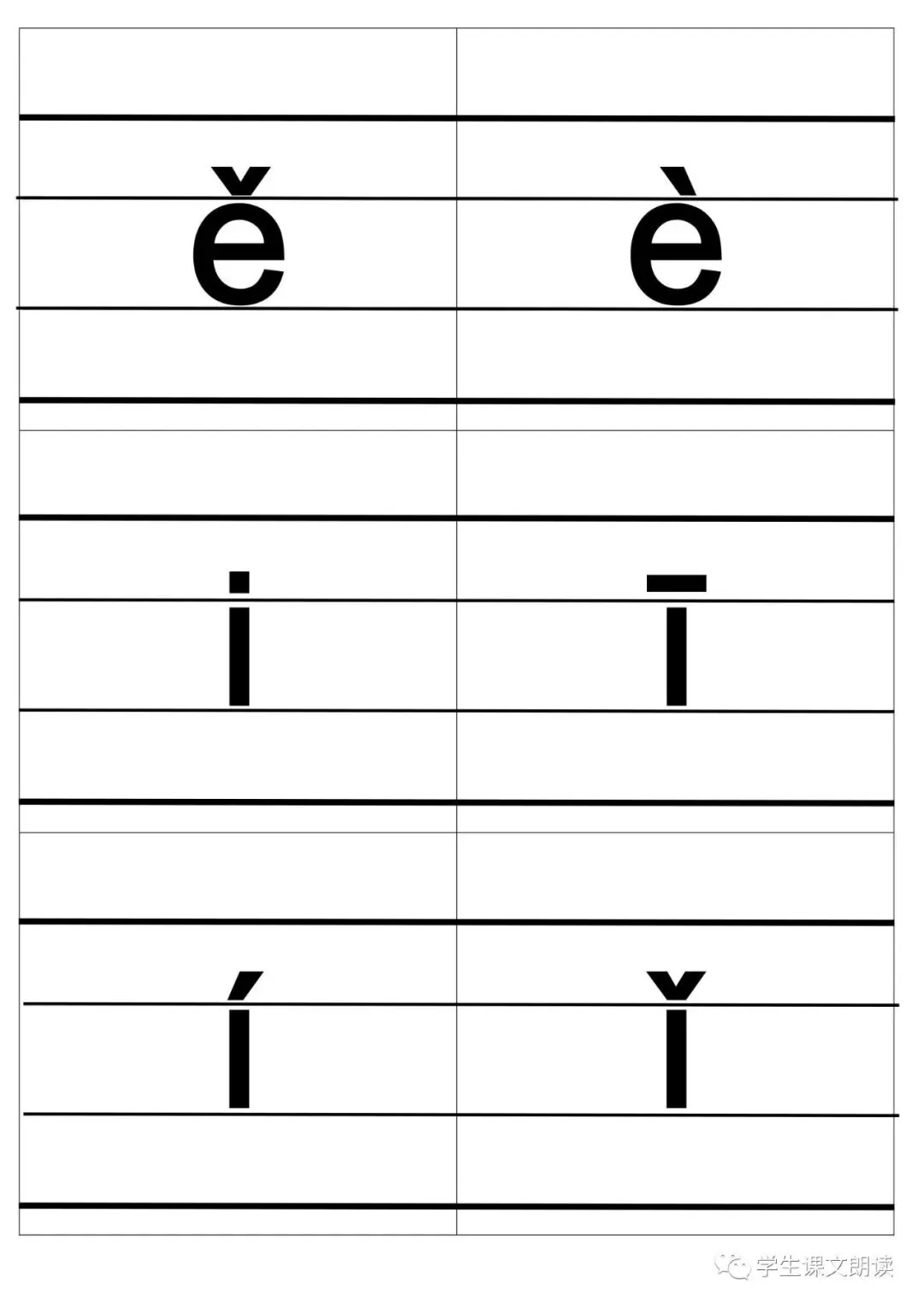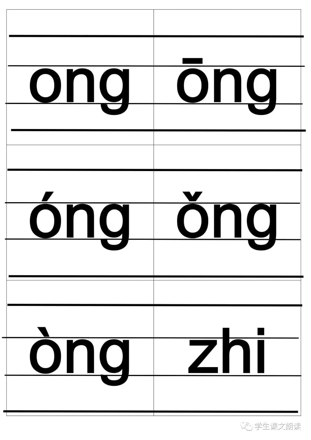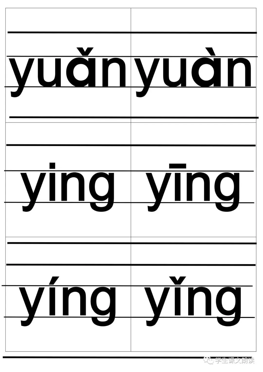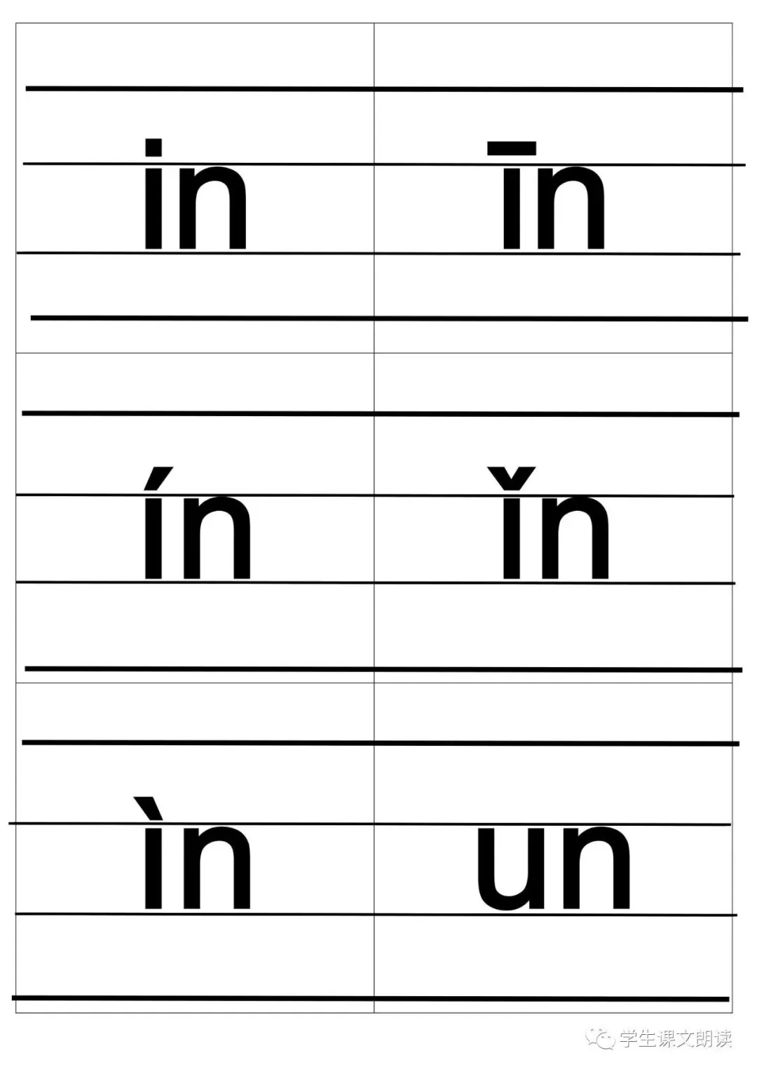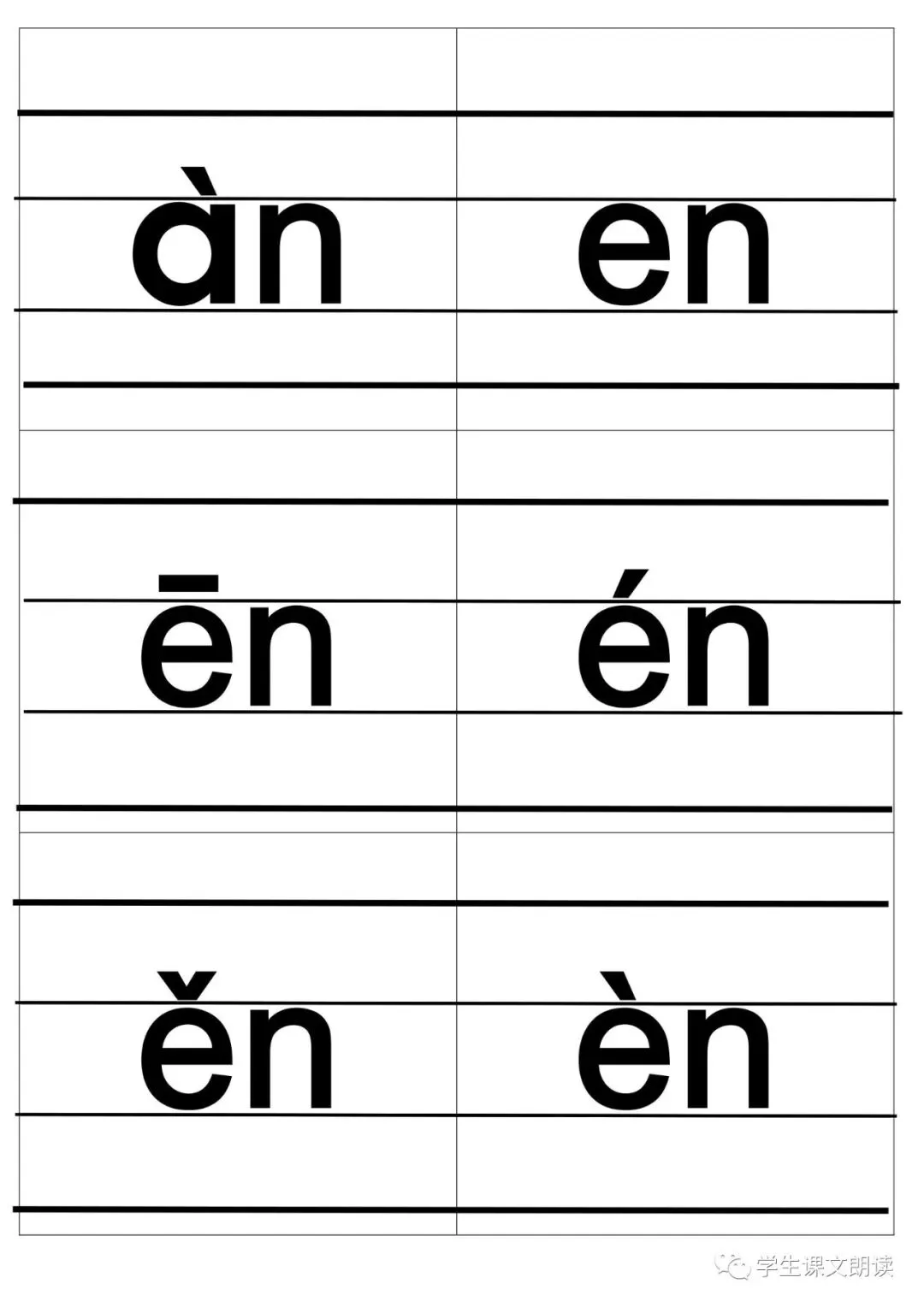 四线格汉语拼音字母大卡-带声调打印版,可下载!
